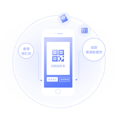 為每個(gè)客戶生成一張獨(dú)一無二的企業(yè)微信二維碼,通過該碼邀請(qǐng)好友后,可追蹤邀請(qǐng)數(shù)據(jù),同時(shí),可獎(jiǎng)勵(lì)邀請(qǐng)者一定的紅包。